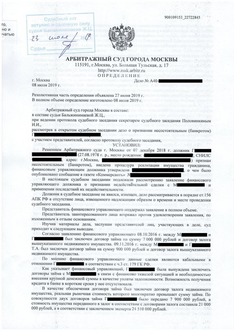 Должник клиента М. обратился в суд с заявлением о признании договора залога земельного участка, жилого дома, бани и гаража, а также двух договоров займа на общую сумму 7 900 000 руб. недействительными на основании кабальности.